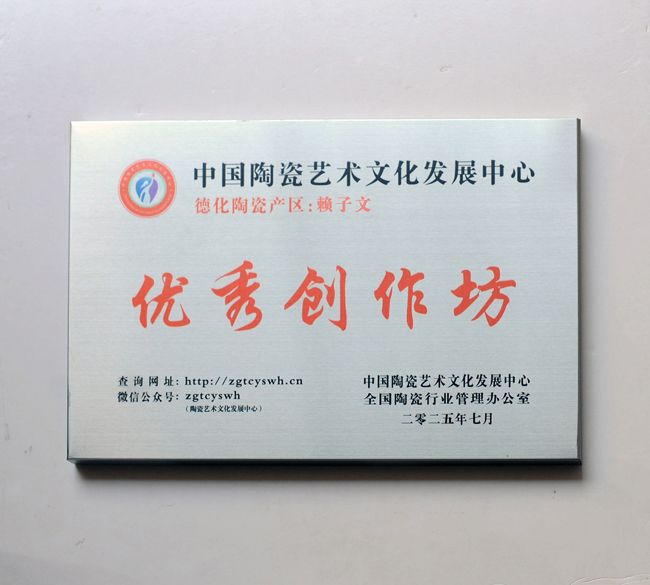 賴子文,1985年出生于“中國瓷都德化”,陶瓷世家,從小深受瓷都德化陶瓷文化熏陶 ,酷愛陶瓷創(chuàng)作,大學(xué)畢業(yè)后回瓷都德化從事陶瓷開發(fā)工作,先后進(jìn)入佳美集團(tuán)等從事陶瓷設(shè)計工作,經(jīng)過多年的學(xué)習(xí)積累,熟練掌握陶瓷設(shè)計、制作、瓷土配方、拉坯、燒制、釉藝等技藝,2024年成立福建省德化縣匯瓷窯陶瓷有限公司并任藝術(shù)總監(jiān)。賴子文從事陶瓷設(shè)計創(chuàng)作10多年,主要作品有羊脂玉、冰種玉瓷茶具、手繪茶具、手拉坯等各種茶器。作品多次獲得國內(nèi)各評比大賽金獎,其作品深受廣大客商、藏家青睞,廣受好評。