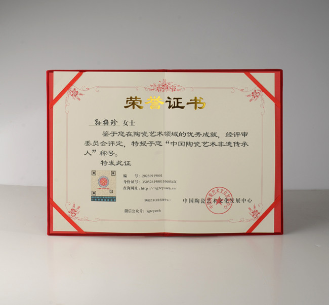 孫梅珍,女,漢族,1988年出生于世界陶瓷之都德化,高級工藝美術(shù)大師、中國陶瓷藝術(shù)非遺傳承人、高級茶藝師、優(yōu)秀創(chuàng)作坊工作室、中國陶瓷藝術(shù)文化發(fā)展中心會員,紀先生、紀夫人品牌創(chuàng)始人,倡導(dǎo)傳統(tǒng)技藝與新質(zhì)生產(chǎn)力創(chuàng)新技術(shù)的結(jié)合,以器為載體讓文化藝術(shù)走進日常。問古過去,普惠當下,探索未來。